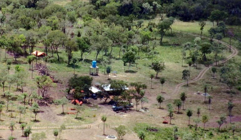 Los militares y agentes especiales, acompañados de funcionarios del Ministerio Público, hicieron un sobrevuelo en helicóptero y pillaron que había una pista clandestina en las coordenadas 22° 22’ 03” S, 57° 35’ 07” W, que queda a 30 kilómetros del casco central de la estancia Estrella, situado a su vez a orillas del río Apa, que representa el límite natural con Brasil.