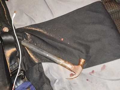 Según el conductor, el pasajero lo golpeó con un martillo, lo que causó que perdiera el control del vehículo, que aceleró, chocó con un muro y luego volcó sobre el lado del conductor.