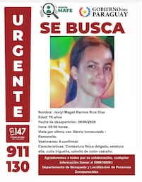 Finalmente, se emitió una alerta de búsqueda de Rodrigo Ezequiel Fernández Martínez (15), quien fue visto por última vez el pasado viernes por la noche en la calle Salvador del Mundo, también en Asunción.