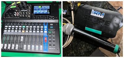 - Microfonía: Un sistema inalámbrico Shure BLX SM58 y dos micrófonos dinámicos Shure SM58.