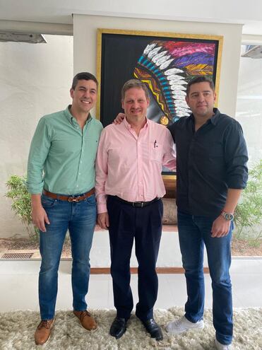 El senador electo Natalicio Chase (centro) junto al presidente electo, Santiago Peña (izquierda), y su vicepresidente, Pedro Aliiana.Gentileza