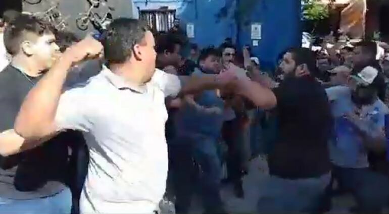 En las imágenes se puede ver cómo dos grupos de miembros del mencionado partido se trenzan a golpes de puño e incluso algunos terminaron en el piso.