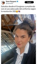 La información se pudo confirmar gracias a que la Dirección de Recursos Humanos de la Cámara Baja observó a unos 14 funcionarios (entre ellos Vane Vázquez) porque no cumplían con el “código de vestimenta”, que consiste en un uniforme de oficina (pantalón de vestir, camisa y saco).