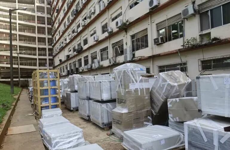 La primera semana de septiembre pasado, ABC publicaba que una importante cantidad de equipos estaban abandonados en el patio del IPS Central. Estos equipos formaban parte de la licitación que fue adjudicada a Neighpart SA. Se pudieron observar enfriadores modulares, compresores, paneles solares, tanques para oxígeno y otros. El monto del contrato en un principio era G. 53.000.000, pero se amplió a G. 8.186.400.000.