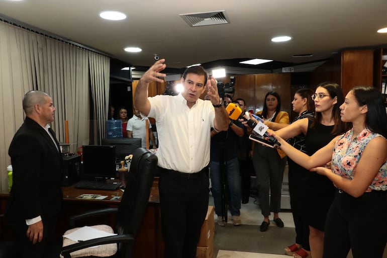 Esta mañana, precisamente Silvio Ovelar convocó a una conferencia de prensa para hacer un recorrido por los pasillos del Congreso, específicamente de la planta baja, y mostrar cómo se instalaron las oficinas y se fue achicando la cantina, intentando justificar así la necesidad de las obras.