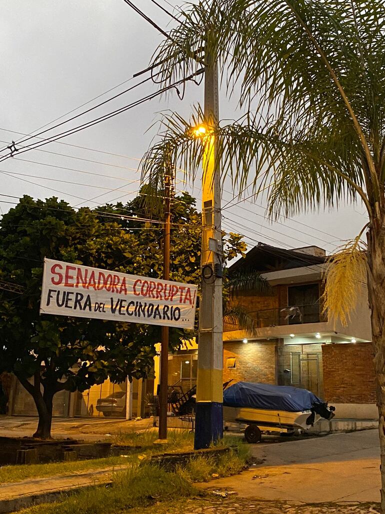 “¡Zenaida corrupta, fuera del vecindario!”, rezaba el cartel que fue colocado estratégicamente en las inmediaciones de la vivienda de la legisladora.