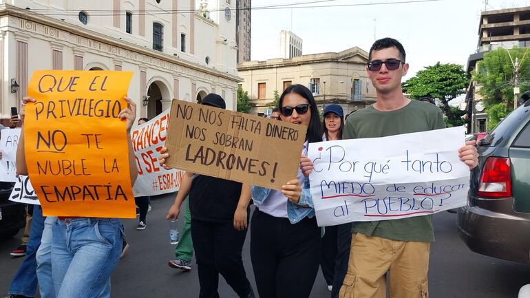 Estudiantes de la Universidad Nacional del Este llegaron a las 8:30 de esta mañana a la zona del Congreso para sumarse a las manifestaciones que desde hace días vienen realizando sus pares en la Capital.