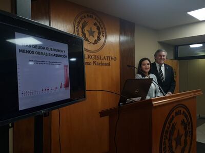 La diputada Johanna Ortega y el senador Rafael Filizzola brindaron una conferencia de prensa para denunciar que aún la Municipalidad de Asunción no ha respondido dónde están los fondos del bonos del G8. “El dinero se esfumó antes del pago de los adelantos de contratos”, revelaron.