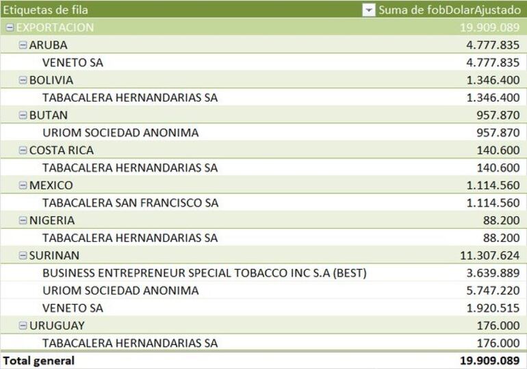 Cuestionó que los cartistas digan que las sanciones de la OFAC son “una guerra comercial”, y consideró que si Philip Morris estuviera detrás de las sanciones, no podría haber otra razón más que el contrabando, que es un delito, porque “una guerra comercial” no tiene justificación con la exportación legal de cigarrillos, ya que es mínima. Expuso que en 2023, Tabesa exportó a EE.UU. apenas por valor US$ 594.000 y nada en 2024 y que, curiosamente, el 84% de sus exportaciones se destinan a paraísos fiscales como Aruba, Surinam y Curacao.