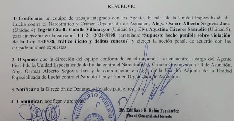 “También dice que debe identificarse a la autoridad designada para el operativo. El allanamiento fue solicitado por dos fiscales, pero la orden de allanamiento cita a 10 fiscales. El 16/08, la FGE resuelve conformar un equipo de trabajo integrado únicamente por 3 de los 10 agentes fiscales”, al referirse a un segundo punto con respecto a la orden de allanamiento.