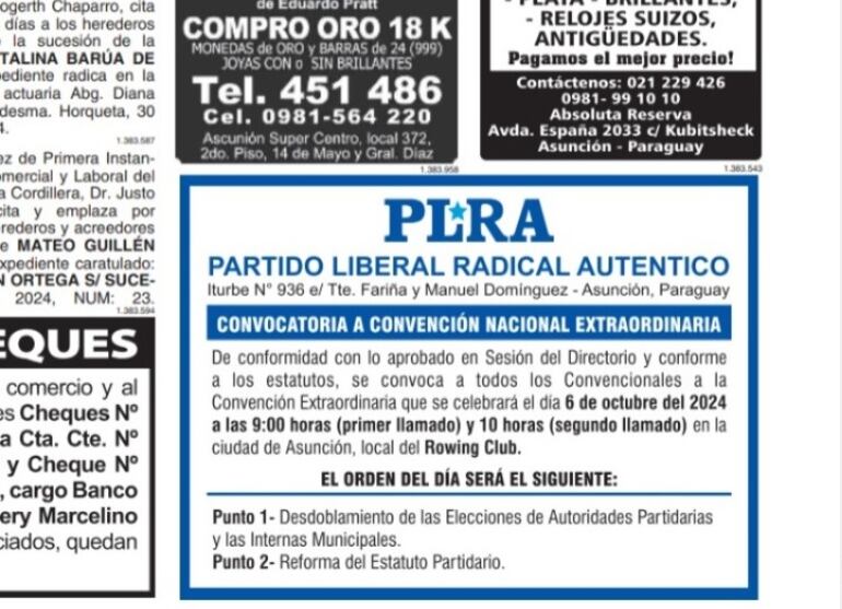 Desde el PLRA indicaron que este partido, institucionalmente, se reserva el derecho a accionar antes o después de la “convención” impulsada por el Nuevo Liberalismo una vez consumada esa asamblea. Se confirmó que otros miembros del Directorio presentaron un amparo contra la convocatoria, que se rechazó y se apeló.