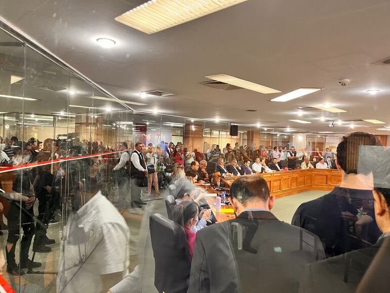 La sesión de la Junta Municipal de Asunción, en la que se trata un pedido de renuncia al intendente Óscar “Nenecho” Rodríguez, fue llevada a un cuarto intermedio de quince minutos por pedido del oficialismo ante una serie de altercados provocados por algunos funcionarios contra manifestantes que siguen la sesión.