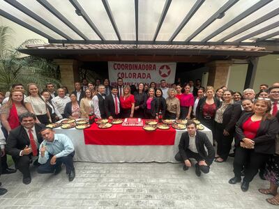 En plena sede del Congreso Nacional, los funcionarios que pertenecen a la Coordinadora Colorada de la Cámara de Diputados fueron invitados a participar de un banquete por el aniversario del Partido Colorado, organizado por su coordinadora, la funcionaria y operadora del cartismo Mirna Daniela Rodríguez de Valinotti, actual directora de Estadísticas y Resoluciones de Diputados con un salario mensual de G. 21.645.000.