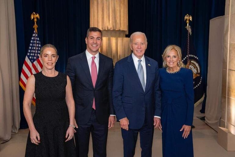 El presidente Santiago Peña, junto a la primera dama Leticia Ocampos, compartieron un encuentro con el presidente de los Estados Unidos, Joe Biden y la primera dama Jill Biden. La Presidencia de la República informó, brevemente, que el mandatario paraguayo mencionó que esta “reunión reafirma el compromiso de seguir trabajando juntos en temas claves para nuestros países”.