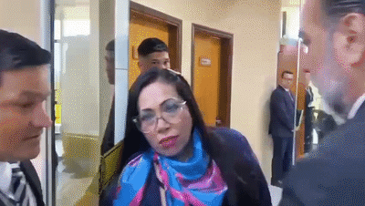 Con el “dedo del medio”, la senadora Yamy Nal respondió las preguntas sobre presunto planillerismo cuando era funcionaria del Poder Judicial.