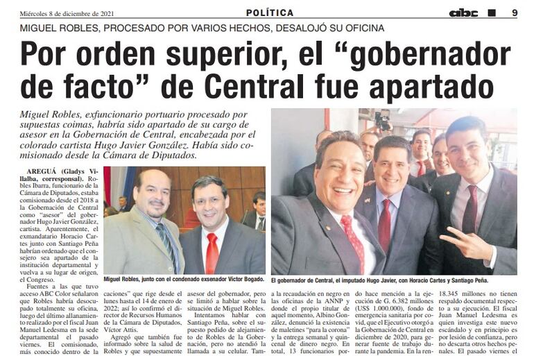 Robles Ibarra precisamente había ido como comisionado a la Gobernación a cargo del Nº 2 hasta diciembre de 2021, cuando su traslado se vio forzado a suspenderse por verse involucrado hasta el fondo en el escándalo de presunto desvío de unos G. 5.105.600.000 en la administración de Hugo Javier.
