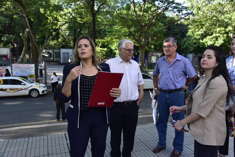 Acompañada por representantes de la Bancada Democrática en el Congreso, la senadora Kattya González presentó por sexta vez un urgimiento a la Corte Suprema de Justicia (CSJ) para exigir la recuperación de su banca del Senado.