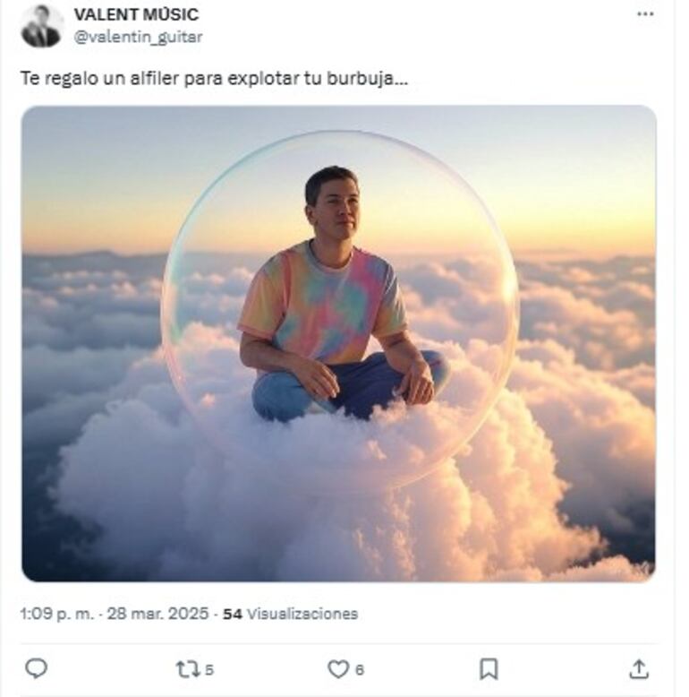 Rubén Aquino también fue duro, cuestionando: “Qué te fumaste para hacer semejante disparate”; mientras que Marcelo Miranda escribió: “En una nube de pedo vivís”, mientras que entre otros memes hicieron montaje del mandatario en una nube y dentro de una burbuja.