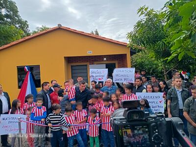 En las fotos compartidas por su equipo de prensa, se observa que nuevamente repartieron remeras de Paraguay para todos los niños. Además, los colocaron al frente de todos los actos oficiales, con carteles alabando su gestión.