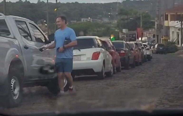 Se trataría del administrador de Aduanas de Encarnación, Nelson Lorenzo Mancuello Álvarez, quien fue avistado saliendo de un gimnasio ubicado sobre la ruta PY06, en la ciudad de Encarnación, con ropa deportiva y abordando una camioneta gris con la inscripción de la institución y con patente AALT 691.