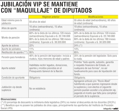 Durante el estudio en particular, el diputado aliado cartista Hugo Meza (ANR, B) introdujo un artículo para permitir que diputados que ingresen desde la suplencia (en reemplazo de titulares) y que sean electos en el periodo siguiente, puedan completar los aportes que falten para llegar a la jubilación vip.