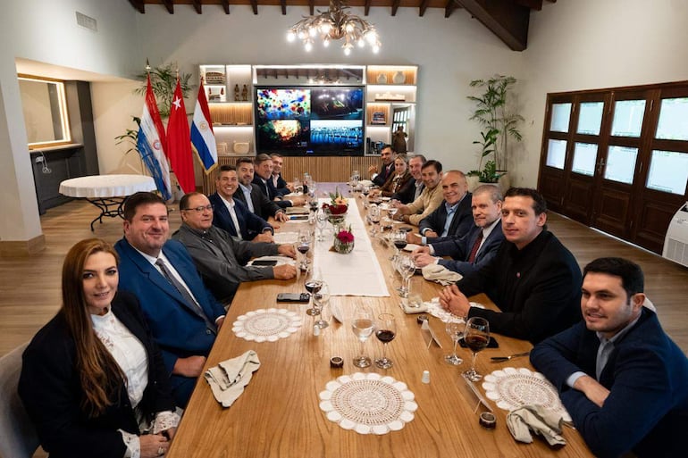 “Reunión de trabajo y coordinación junto al presidente Santiago Peña y Senadores”, indicó el vicepresidente de la República y precandidato a presidente para el 2028 por Honor Colorado, Pedro Alliana, acompañando con una foto en la que el cuestionado senador cartista Hernán Rivas aparece en una de las cabeceras.