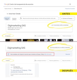 El Centro de Transparencia de Anuncios de Google ocultó más de 60 contenidos que fueron difundidos en Paraguay a través la agencia de comunicación digital Digimarketing SAS, ubicada en Bogotá, Colombia, –a 3.800 km de Paraguay–.