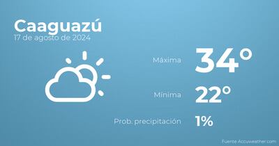 En las primeras horas del día en Caaguazú habrá nubes y claros. Por la tarde se espera escasa nubosidad. En cuanto a las temperaturas, estas se moverán entre una máxima de 34 y una mínima de 22 grados centígrados. Viento de poca intensidad con valores de hasta 30 Km/h.