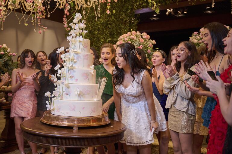 La quinceañera lució un vestido diseñado por Beverly Kuhl y esperó emocionada a sus familiares, amigos y compañeros del Colegio Santa Caterina da Siena.