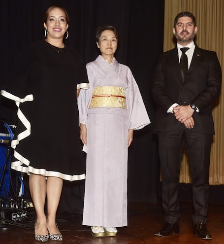 Roció Rolón, directora del Centro Paraguayo Japonés junto a la embajadora de Japón en Paraguay, Yoshie Nakatani y el intendente de Asunción, Óscar Rodríguez.Hebe Carballo 23-08-2023