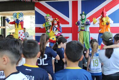 Pablo Tomé, Patricia Lacasa, Valeria Ricciardi y Jose Daglio.Cristian Vega, Diego Ovelar y Danilo Liuzzi, Santiago Riquelme, Nicolás Zaracho, Guillermo Cañete, Ignacio Liuzzi, Diogo Ovelar, Federico Núñez y Juan Morales.Competidoras en el interescolar del San Andrés.Santiago Riquelme y Gisela Arréllaga.Enzo Palumbo, Alicia Spinzi y Ezequiel de Oliveira.La mascota del interescolar.Partido de básquet.Natalia Irala, Elizabeth Kohn, Luciana Brítez y Florencia Castillo. Jazmin Sánchez y Adriana de Friedmann.Claudia Casco, Delfina Berea, Agustina Fleitas y Olivia Cacavelos.Fran Acosta y José Acosta.Pamela Aveiro, Natalia Villalba, Emma Cataldo y Farah Zacur.Carla Oddone y Chiara Stark.Fútbol.
