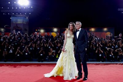 El primero en llegar fue Pitt, con traje de chaqueta y camiseta negra, junto a su novia Ines de Ramón, que no posó ante las cámaras. Después lo hizo Clooney, rigurosamente en esmoquin, con su esposa Amal Alamuddin, esta con un largo vestido de gasa amarillo.