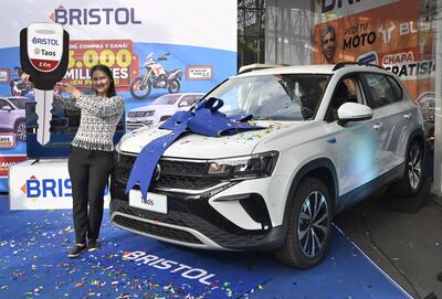 Este artículo tiene 1 año de antigüedad En un evento cargado de emoción, Bristol entregó una Volkswagen Taos 0 km a María Victoria Insfran en el marco de la promo “3000 millones en premios”. Asimismo, se llevó a cabo el sorteo de una moto Buler Super Sport más G. 20 millones, donde resultó ganador De la Cruz Ramón Caballero Silva. Además, durante la celebración, que se desarrolló en la Casa Central de la firma ubicada en la calle Capitán Román García y Dra. Serafina Dávalos en Asunción, se anunció una fiesta de descuentos de hasta el 50% durante todo diciembre por la Navidad.