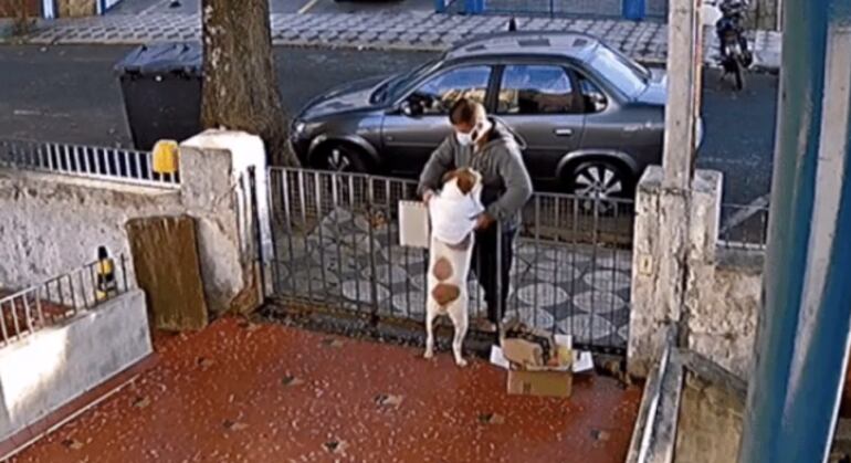 Una cámara de circuito cerrado captó el momento en que un hombre, cuya identidad hasta el momento se desconoce, se acerca al portón de la casa y acaricia a la dócil cachorrita.
