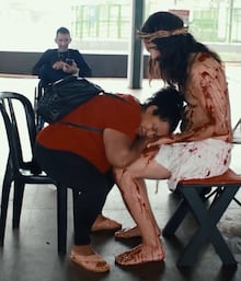 La compañía brasileña de “Teatro Arte e Graça” compartió un video que fue realizado por ellos en el que se ve a un actor que representa a un Jesús completamente ensangrentado y lo acompaña un cartel que cita “siéntense conmigo”.