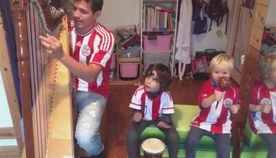 Los compatriotas saludan y alientan a la Albirroja desde distintos países del mundo. Tal es el caso de Alberto Sánchez, un arpista paraguayo que reside en Alemania hace 5 años.