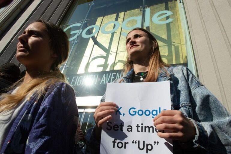 Durante la concentración en el barrio de Chelsea se podían leer pancartas con mensajes como “Los derechos de los trabajadores son derechos de las mujeres” o “Se acabó el tiempo, empresas tecnológicas” , después de que The New York Times desvelara que el fundador de Android, Andy Rubin, recibió 90 millones de dólares como indemnización después de su despido tras acusaciones de abuso sexual a una trabajadora.