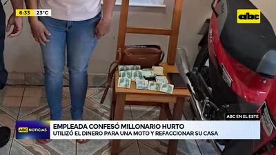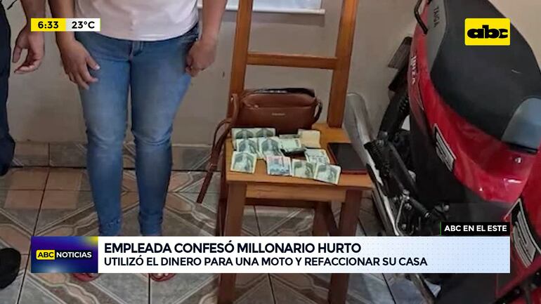 Este artículo tiene 1 año de antigüedad Una empleada doméstica hurtó G. 56 millones que su empleador había guardado en una caja metálica de su dormitorio. Al ser descubierta, devolvió solo G. 12 millones, ya que el resto lo habría destinado para refacciones en su vivienda y la compra de una motocicleta nueva.