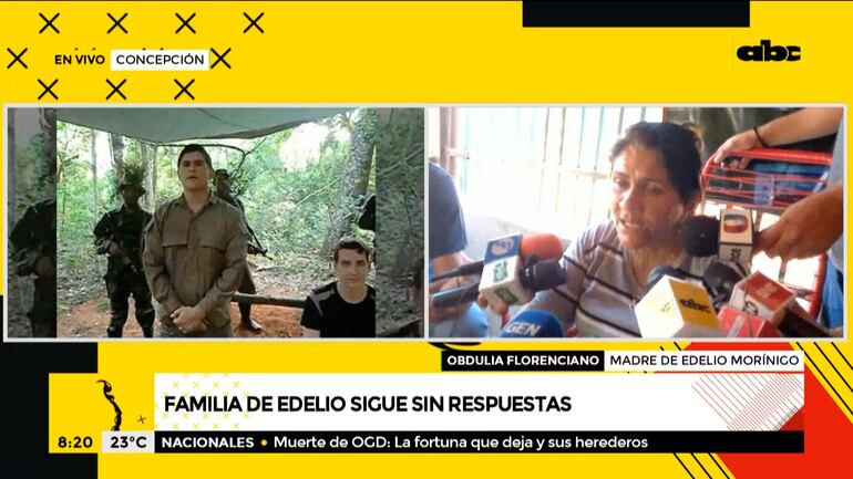 Este artículo tiene 4 años de antigüedad Doña Obdulia Florenciano, madre de Edelio Morínigo (secuestrado hace siete años y tres meses por el EPP), declaró hoy en una conferencia de prensa que recibió un mensaje de texto de una persona que se identificó como agente de Criminalística quien le afirmó que le entregarían los restos de su hijo en 15 días, pero que eso no ocurrió.