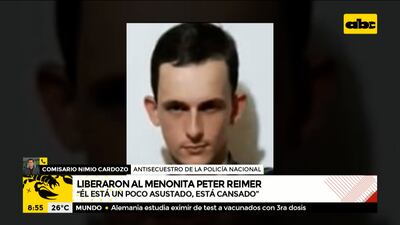 Este artículo tiene 3 años de antigüedad El comisario Nimio Cardozo, Jefe de Antisecuestros de la Policía Nacional, dijo que están intentando comunicarse con el padre de Peter Reimer, menonita secuestrado y liberado por el EPP esta mañana. Mencionó que tiene el dato de que el joven está asustado, pero en buen estado de salud.