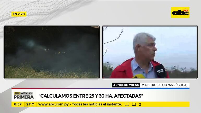 Este artículo tiene 6 años de antigüedad El ministro de Obras Públicas, Arnaldo Wiens, señala que todavía no tienen un número exacto de hectáreas afectadas por el incendio en Parque Guasu, pero calculan que son 25 a 30 áreas. Buscarán la manera de recuperar lo afectado por le siniestro.