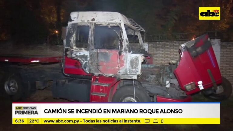 Este artículo tiene 5 años de antigüedad Un camión se incendió íntegramente en la calle Mariscal Estigarribia, cerca de Puerto Seguro en el barrio Rosa Mística de Mariano Roque Alonso. Los bomberos acudieron para evitar la propagación del incendio a otros camiones.