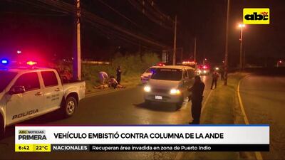 Este artículo tiene 5 años de antigüedad Dos personas resultaron heridas tras un choque de su vehículo contra una columna de la ANDE sobre la avenida Transchacho frente al jardín botánico. El conductor tuvo más golpes.