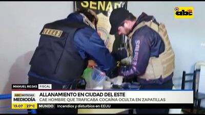 Este artículo tiene 5 años de antigüedad La Secretaría Nacional Antidrogas (Senad) incautó esta mañana 8,015 kilos de cocaína durante el allanamiento en un laboratorio de cocaína que funcionaba en una vivienda ubicada en el km 9 Acaray de Ciudad del Este. En la casa intervenida fue detenido Milciades Zaracho Barreto (40).