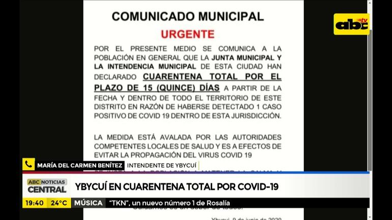 Este artículo tiene 5 años de antigüedad La intendente de Ybycuí María del Carmen Benítez, afirma que declaran cuarentena total por 15 días en ese municipio para evitar la propagación del covid-19. El departamento de Paraguarí tiene un alto número de contagiados.