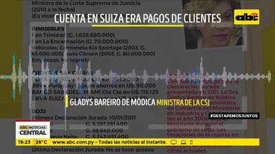 Este artículo tiene 5 años de antigüedad La ministra de la Corte Gladys Bareiro de Módica sostuvo que abrió una cuenta de ahorro en Suiza porque, cuando anteriormente se dedicaba al sector privado, recibía en un banco de ese país europeo los pagos de sus clientes que tenía en el extranjero. También declaró otra cuenta bancaria en Miami, Estados Unidos.