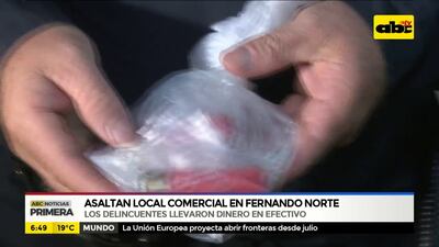 Este artículo tiene 5 años de antigüedad Un local comercial que se abre las 24 horas fue asaltado en Teniente Etienne y Waldino Ramón Lovera, barrio Laguna Grande, Zona Norte, Fernando de la Mora. Los delincuentes llevaron dinero en efectivo.