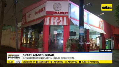 Este artículo tiene 5 años de antigüedad Un local de market, ubicado en la equina de la calle Eusebio Lillo y O’Higgins del barrio Villa Morra de Asunción fue robado por dos hombres que llegaron en una motocicleta e ingresaron al negocio como clientes. Llevaron dinero en efectivo y botellas de whiskys.