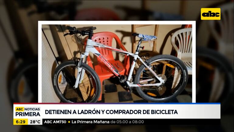Este artículo tiene 5 años de antigüedad Dos hombres fueron detenidos luego del hurto de una bicicleta en el barrio Alegre de Guarambaré. El presunto autor del robo Marco Antonio Caballero Gómez, de 21 años y con varios antecedentes, y el supuesto comprador Wilfrido Ramón López Acosta, 41 años, propietario de un talles de bicicletas. La víctima realizó la denuncia y rápidamente los policías encontraron el biciclo que fue comprado en apenas 110 mil guaraníes.