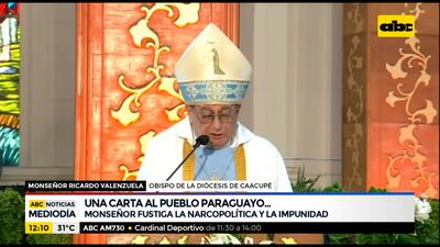Este artículo tiene 5 años de antigüedad Tal y como lo hizo el año pasado, luego de la misa central, monseñor Ricardo Valenzuela leyó una carta al pueblo paraguayo en que fustigó la narcopolítica y la impunidad.